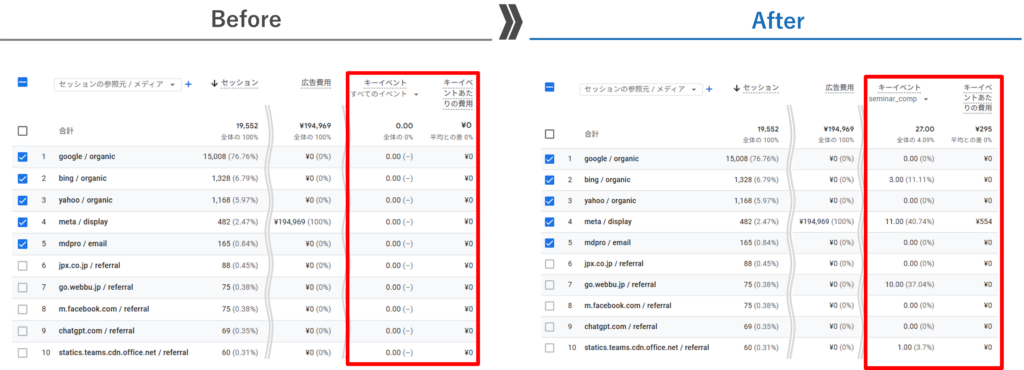 これにより、各媒体の管理画面を行き来することなく、GA4上でクロスチャネルでのコスト管理や成果分析が統合的に行えるようになります。