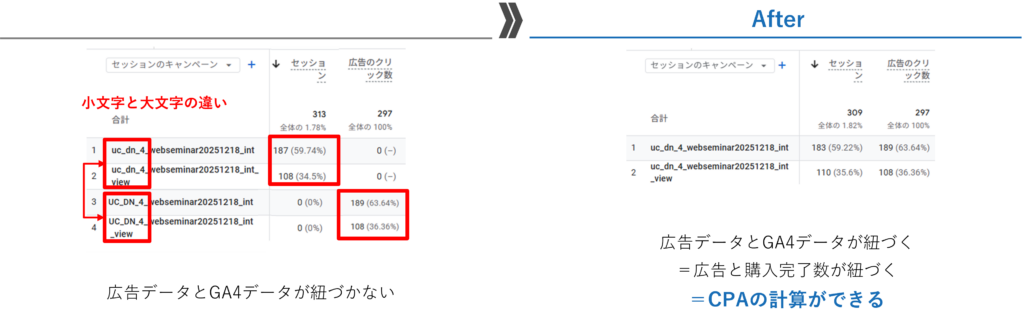 SNS広告とGA4のデータを連携させる場合、一番重要なのは、管理画面の設定とパラメータの値を完全一致させることです。