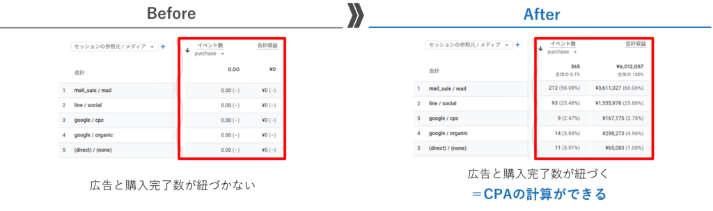 コンバージョン(キーイベント)設定ができていないと、広告連携してもせっかくのCPAを確認することができません
