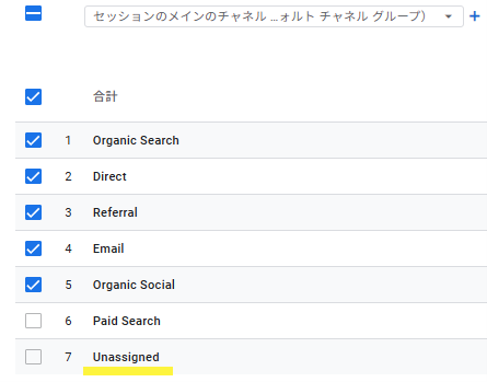 デフォルトチャネルグループのレポートに、「Unassigned」というチャネルが表示されることがあります。これは、GA4がどのチャネルにも分類できなかった、正体不明の流入を意味します。