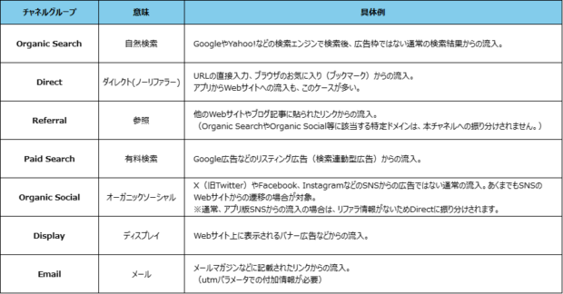 参考|Google 公式ヘルプ [GA4]デフォルトチャネルグループ
