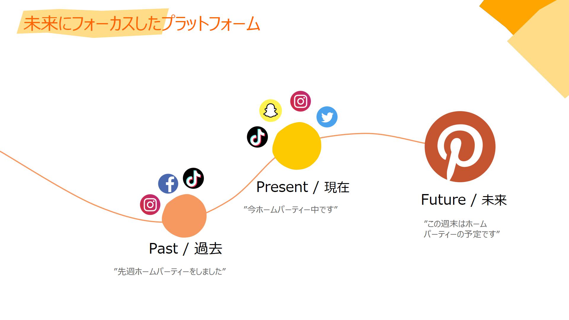 ピンタレストとほかのSNSの違いでも触れましたが、ピンタレストユーザは、まだ明確に目的が決まっていないフェーズで、インスピレーションを得るために活用します。